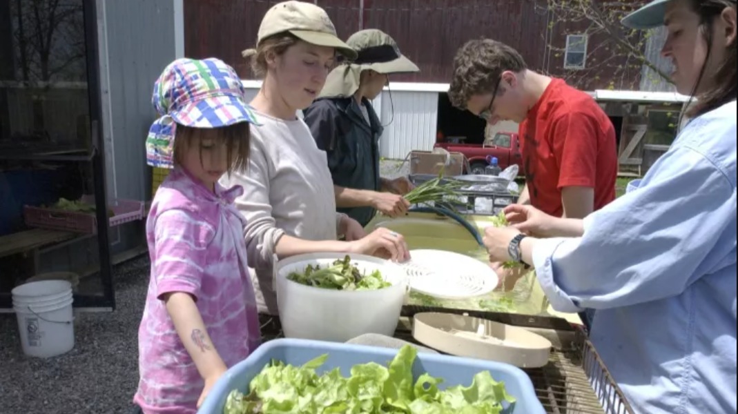 Genesee Valley有机CSA农场的所有会员都在农场中承担一定的工作,图为会员们正在洗菜。
