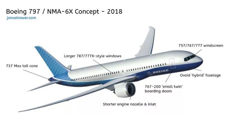 这款分析师口中的新中型飞机即波音的NMA(New Midsize Airplane)计划,也就是大家口中传说的波音797。