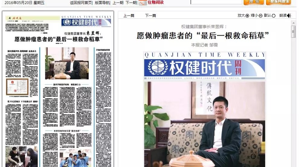 在权健频频陷入舆论风波之时,2013年6月,曾经深度调查并质疑权健的《中国质量万里行》杂志,刊登了一篇束昱辉的报道。