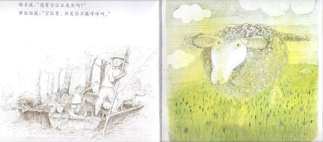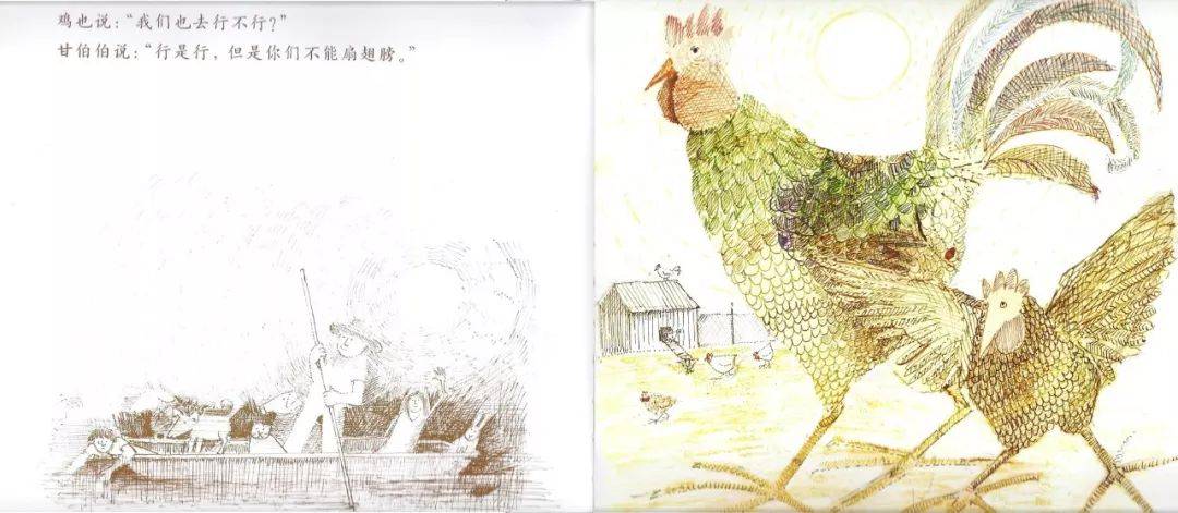 有趣就是好玩,好玩特别难。因为绘本都是大人创作的,大人已经不好玩了。有的大人好玩,但是大人那种好玩和孩子的好玩不是一种好玩。再举一个例子,《和甘伯伯去游河》,讲讲同一个绘本大家不同的认识。