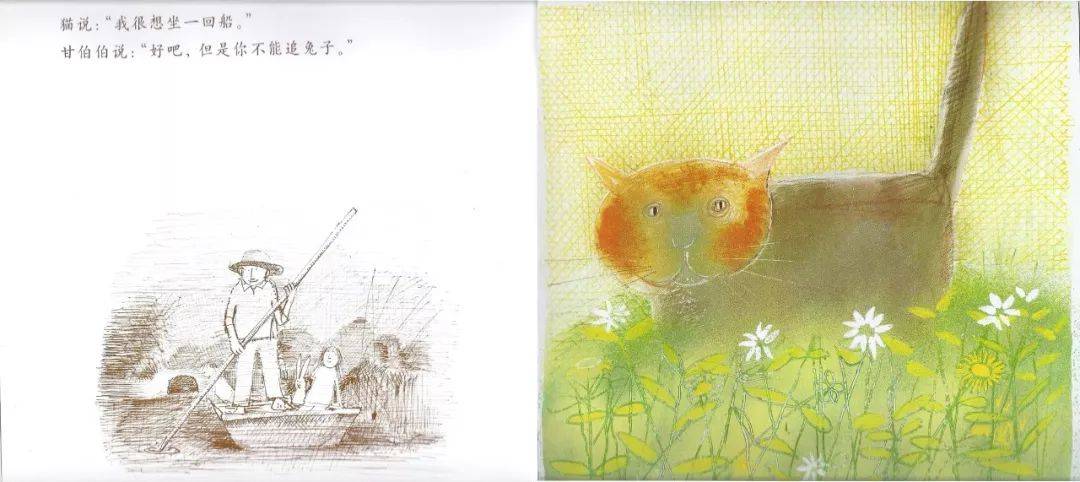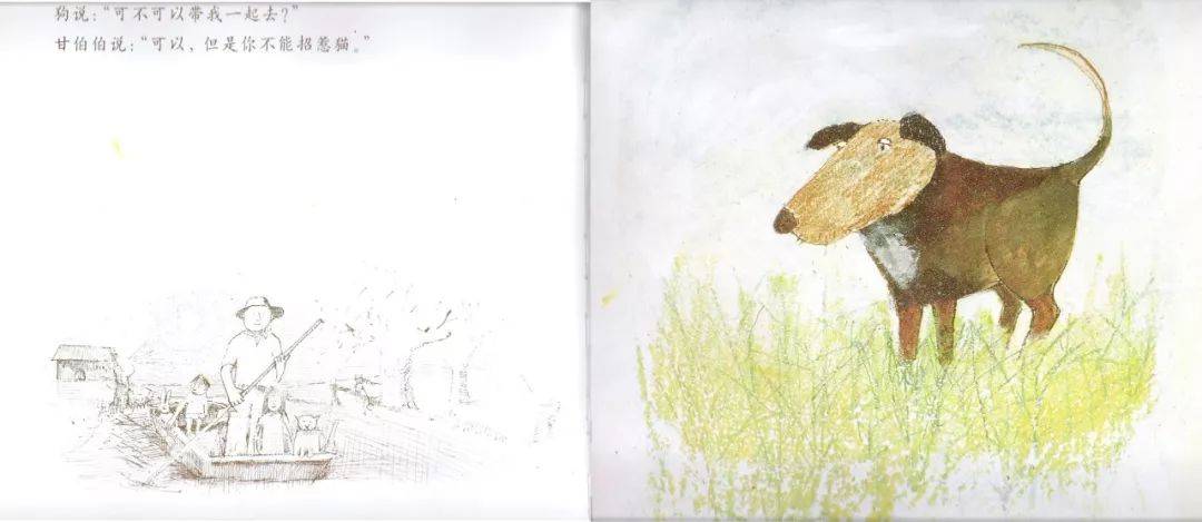猫说,我也想坐船。可以,但是你不要追兔子。狗说,我要坐船。甘伯伯说,可以,但是你不能招惹猫。
