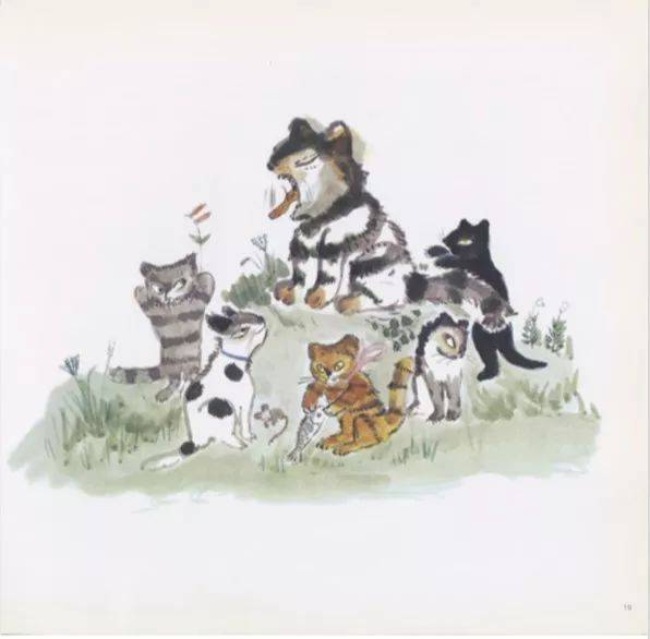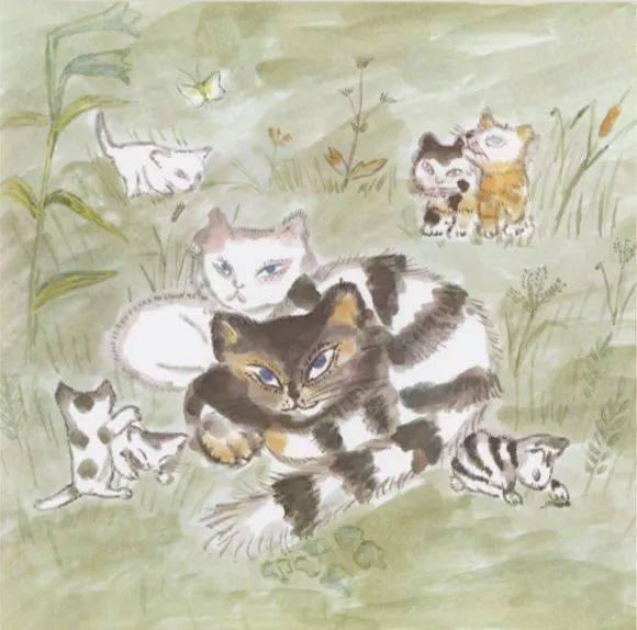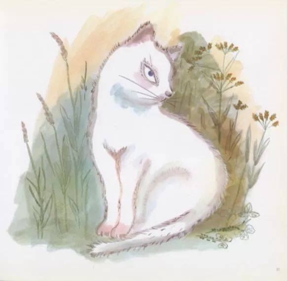 又过了很多年,小猫们都长大了,各奔东西。只有猫和白猫在一起,天天你靠着我、我靠着你,喉咙里发出“咕噜咕噜”的声音。