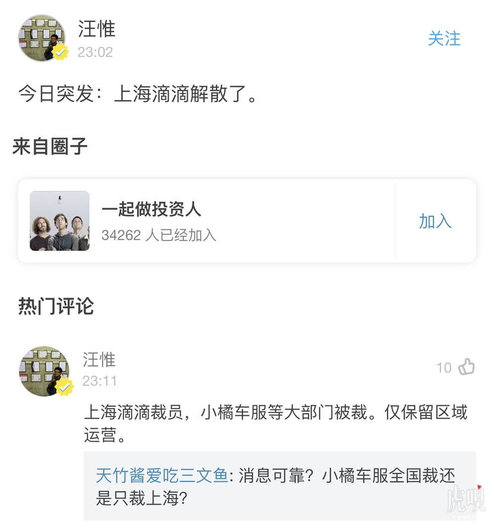 1. 昨日有传言称滴滴上海团队解散,员工并入杭州和北京。对此,滴滴方面回应称,该消息为谣传,滴滴上海团队一切正常,“未来将继续服务好广大乘客朋友和司机师傅们,谢谢大家的关心。”