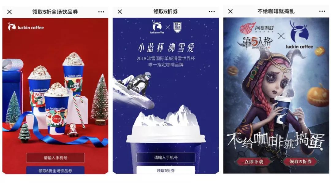 这是luckin反复推演后要做的营销战术的开端。代言人汤唯张震和logo中的鹿头、蓝色都是为此精心准备的,足够有辨识度、品质感,在微信及LBS广告投放的模式中,他们是获得第一批用户的“网”。