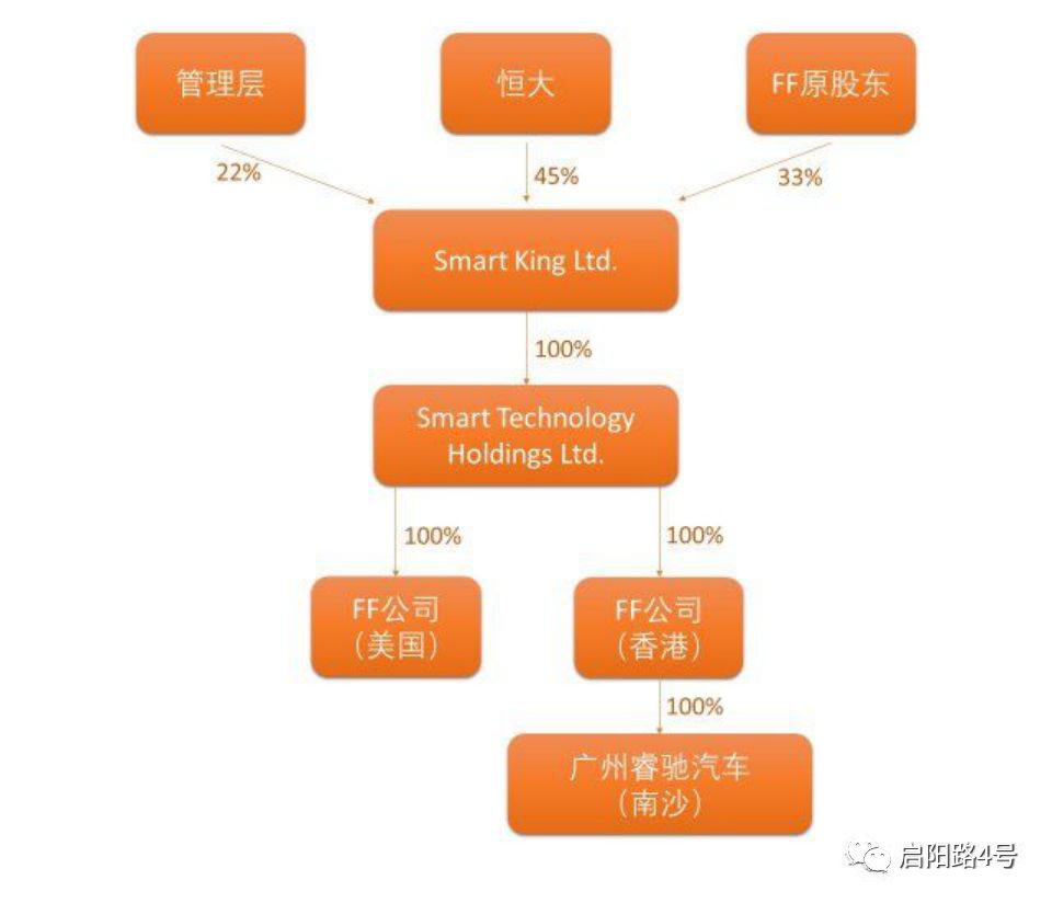 恒大和FF”联姻”后公布的FF的股权新结构图