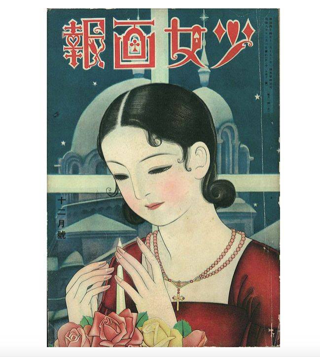 《少女画报》(少女画報),1912 年创刊、1942 年停刊的少女杂志,图为蕗谷虹儿绘制的1933 年12 月号的封面