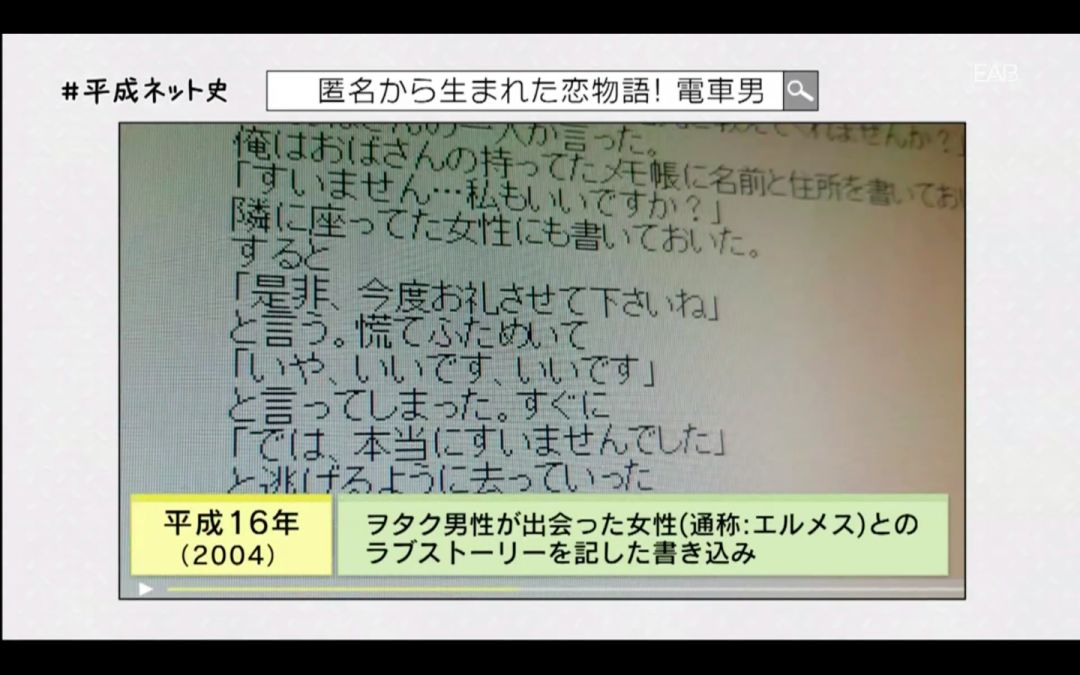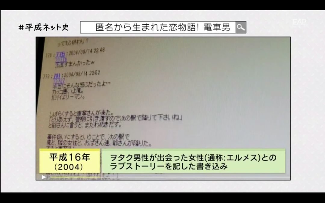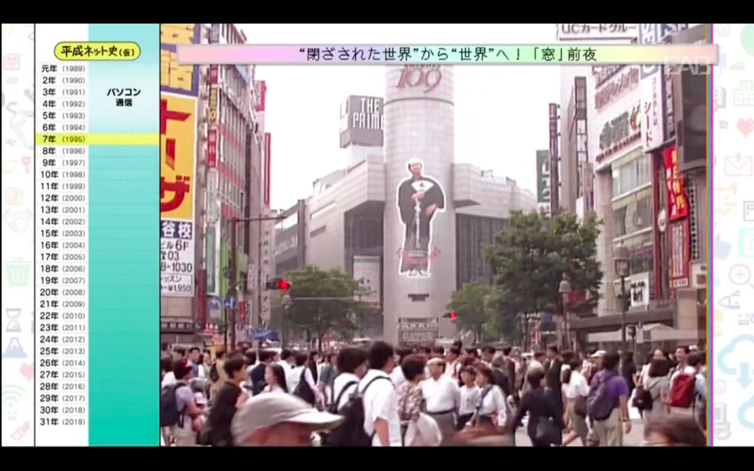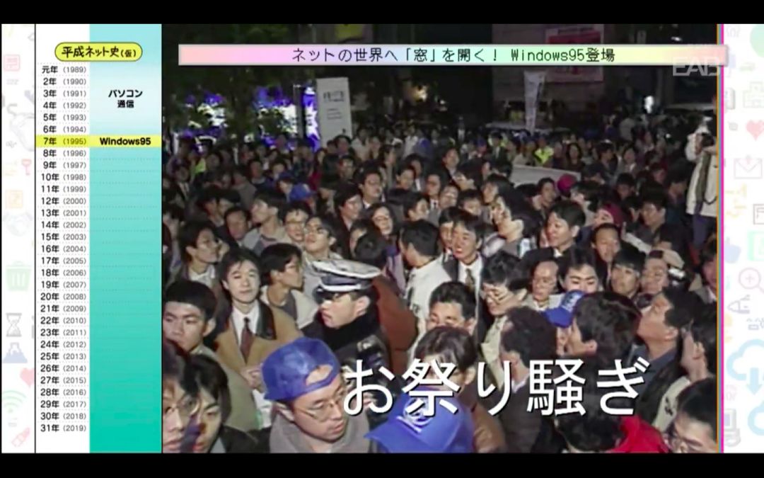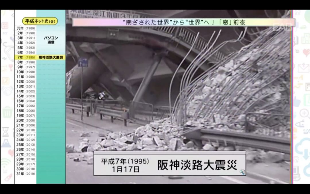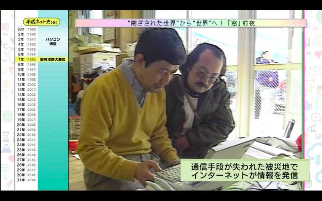 新年伊始,NHK制作了一档《平成网络史》的纪录片,从“Windows95”的发售开始,到「テキストサイト」(文字网站)、「2ちゃんねる」(2ch)、以及「写メール」(图片短信)、「フェイクニュース」(假新闻)的出现,演播室还邀请了在活跃于日本互联网的人物,一边回顾当时的影像,一边解读日本的互联网历史。