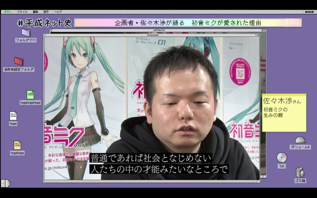初音未来的企划者、被称为初音未来生父的佐佐木涉说:“在社会中不太出世的普通人,他们用自己的才能、不考虑商业回报、甚至花一年的时间创作,形成了一个自由的创作链条。”