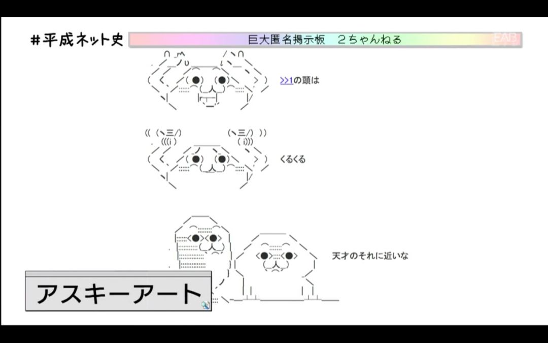 而现在仍在使用的代表日本网络文化的アスキーアート(ASCII Art)以及网络用语等,都是在2ちゃんねる出现的。