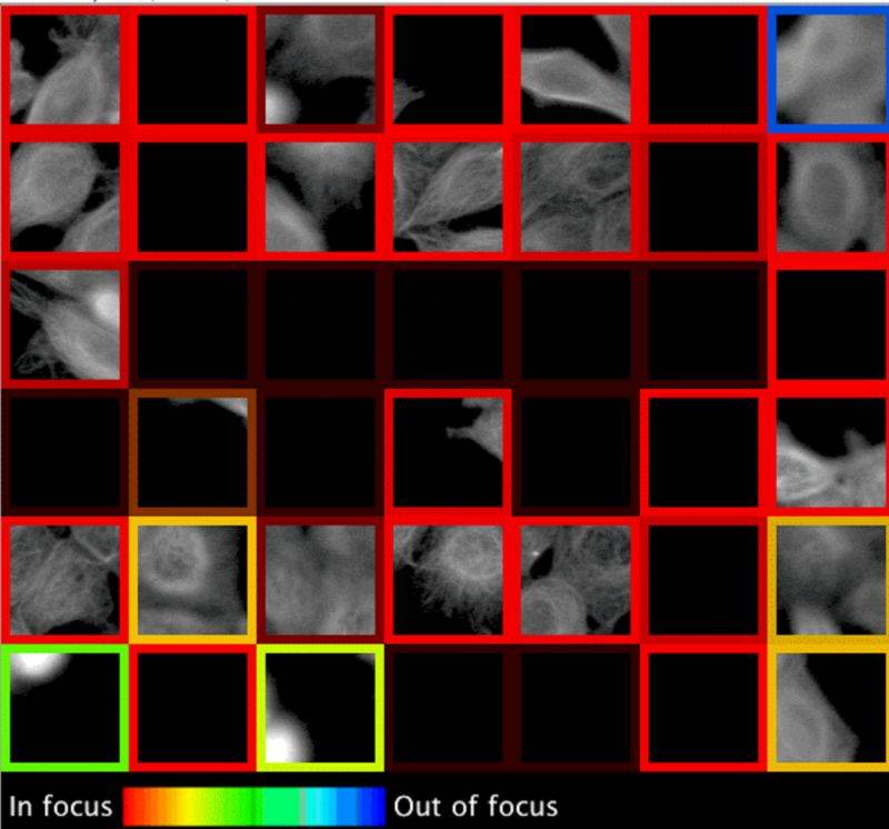 经过预训练的 TensorFlow 模型可以对 Fiji(ImageJ)细胞显微镜下的图像斑块拼接进行对焦质量评估。该模型会利用边界位置的色调与亮度分别估算对焦质量以及预测准确性。