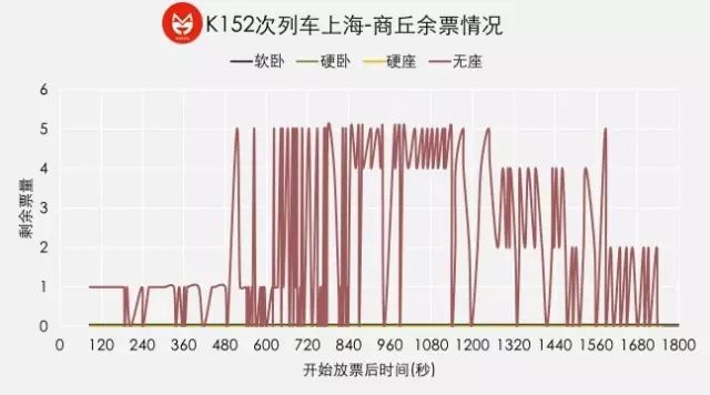 上图是K152的上海-商丘段的余票情况。开始放票后,硬座、硬卧、软卧瞬间被抢空,而少量剩余的无座票则经历了无数轮血腥激烈的拼抢,退票抢票的时间间隔往往只有几秒。半小时后,战斗才暂时告一段落。