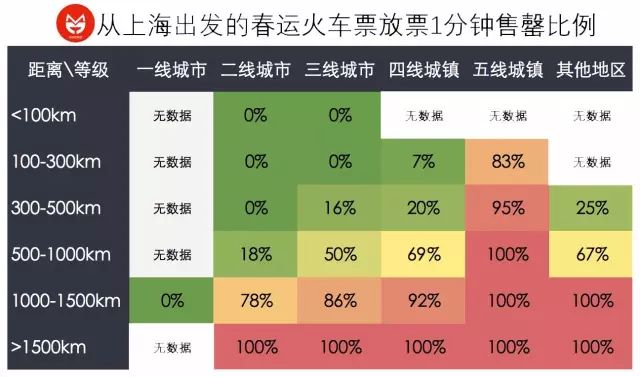 从距离上看,目的地距离上海越远,票越难抢;从城市等级来看,目的地越是小城镇,票越难抢。