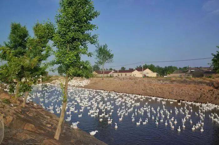 这个村子里山水相间(这个有点扯,山在哪儿),麦田荡漾,鹅群成片,风景美自不必多说,而且还很现代,一排房屋的规格、墙面、门窗整齐划一,家家户户都装了空调,很多家还有车库和轿车。