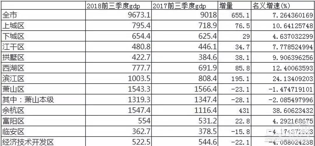 简单的来说就是没有产业。去年浙江省统计局公布的2018年1月~9月各地区生产总值数据来看,虽然余杭区以微弱优势超越了萧山区,成为第一,但萧山的名义增速为负还是出乎意料之外。而如果只看萧山本级,名义增速放慢得就更加明显了。