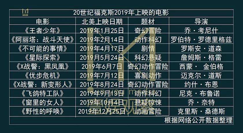 20世纪福克斯在2019年将推出了不少值得关注的超级英雄系列电影,“X战警”系列就有《X战警:黑凤凰》和《X战警:新变形人》,这一系列是20世纪福克斯最具票房号召力的系列之一。奇幻科幻冒险影片《王者少年》《星际探索》和动画影片《飞鸽特工队》则凭借演出阵容被认为是有可能出现的黑马。此外,受《攻壳机动队》等影片影响近年热门的日本漫改真人电影系列,20世纪福克斯还推出了《阿丽塔:战斗天使》,也是值得影迷期待的影片。