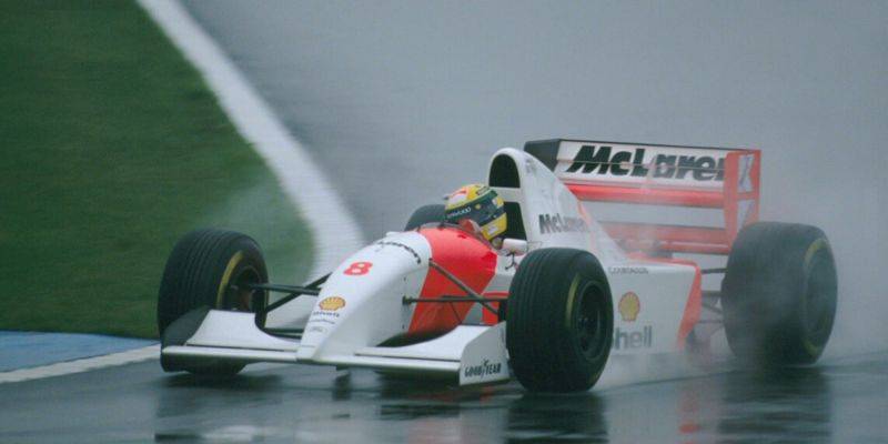 塞纳幼时就显露了他的赛车天赋,在参加 F3 比赛时三年拿下惊人的 44 场冠军,24 岁便顺利进入 F1 赛场。来到 F1 这个汽车运动的金字塔尖,他在第二年便取得首次胜利,那一场比赛瓢泼大雨终结了无数老牌冠军车手,年轻的塞纳却一路稳稳夺魁,“雨神”的称号也成为了塞纳的代名词。
