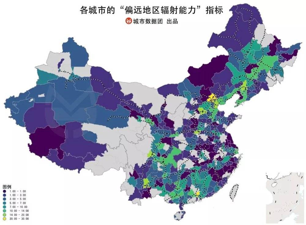 除了上述指标外,对“偏远地区”的辐射能力也是我们所看重的。辐射能力强的城市,往往是交通甚至军事上的战略要地。