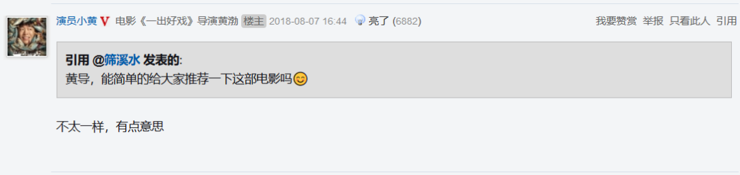 降低姿态的黄渤与网友进行互动,其中黄渤机智、幽默、精准的回答获得了虎扑网友广泛喜爱。黄渤仅用文字互动就收获了1万多条的回复,250万次浏览量,带来一定的转化,助力影片最终获得13.5亿元票房。