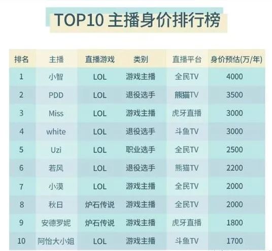 “Miss年薪3000万签约虎牙、小智4000万年薪入驻全民、PDD 3500万加盟战旗TV”,知名主播的纷纷跳槽,使数量百万的粉丝批量流动,你争我抢,好不热闹,彼时,每家平台的头部主播数量至少维持在3-5个左右。