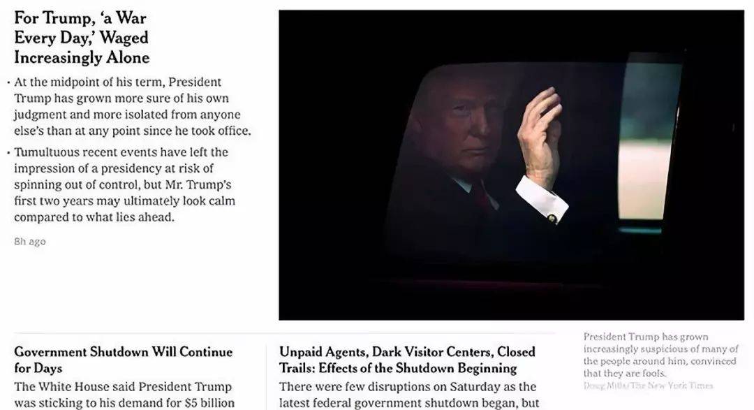 特朗普执政的第二年,在联邦政府部分关闭的状态中落幕。这种状态延续至新年,创下了美国“政府停摆”最久的历史记录,或许还会再次停摆,也可能以总统宣布“国家紧急状态”而告终。《纽约时报》报道说,特朗普曾在浏览媒体大标题时感叹道,“我干得很棒,但每天都像一场战争!”