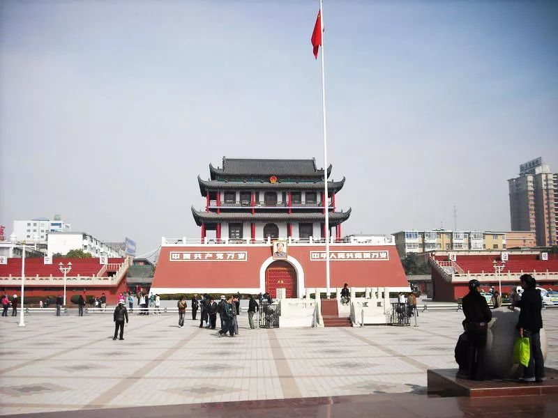其中宁夏某市的南门楼其实是一座民国时期重建的旧城门,本来与天安门长得并不太像,但当地政府特意做了一番整容,把城墙刷成红色,中央挂上毛主席像,两边对称加上两条标语,硬生生地将一座真实的历史建筑变成了天安门的山寨版。