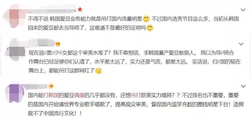 关于“韩国偶像吊打国内偶像”的言论