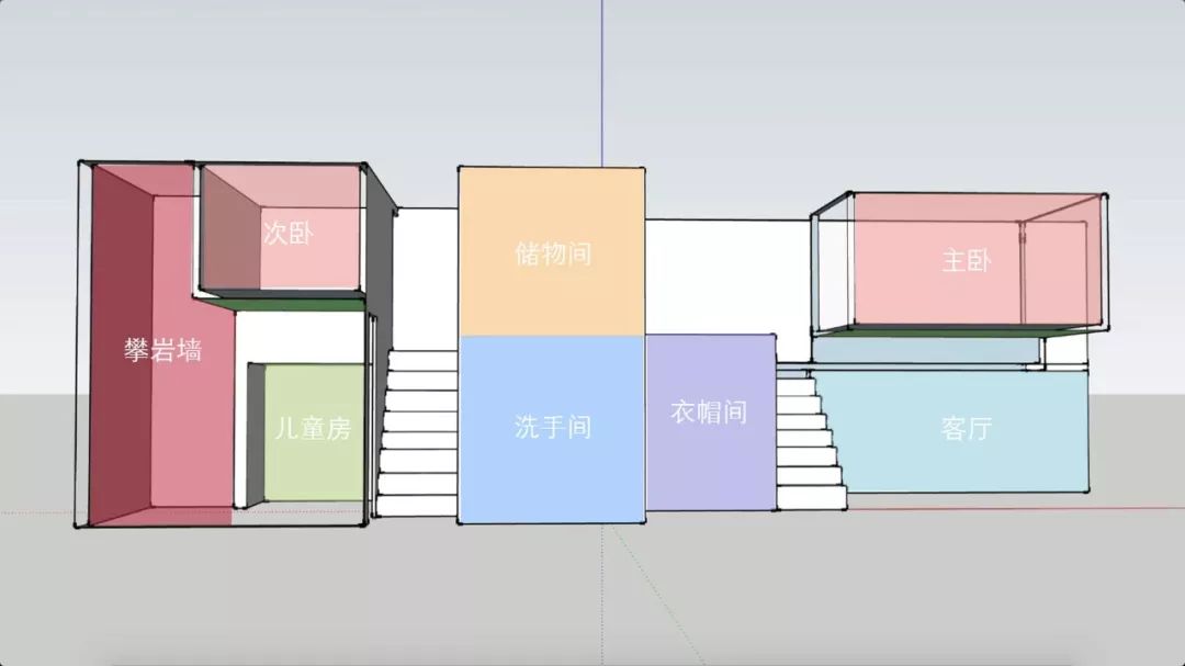 总层高3.75米,我们设计的原则是“上下交错”,楼下可以走人的地方,楼上基本上用来储物。