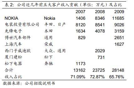 2010年IPO时,四维图新是GPS手机地图和车载导航地图供应商,既是诺基亚在中国的重要合作伙伴,也是丰田本田等一众日系车的车载导航系统供应商。大客户傍身风光无限,前5名大客户占总营收接近70%。