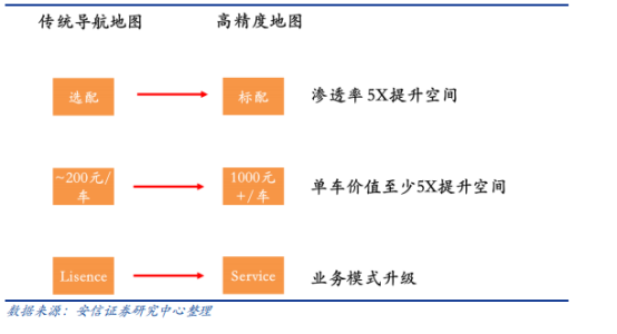 (3)自动驾驶的数据需要动态甚至时时更新,产生数据量远超传统地图授权,因此后期会产生数据服务收费业务。从一次性收费到按照效果和需求不断续费,从一次性授权变成服务型的细水长流。