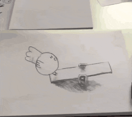 ▲ 这是一个我们看了有点心疼,鼠类动物看了想打人的一个演示。利用接近速度等于分离速度,我们同样可以分析出飞翔的小仓鼠的速度将会是其落地速度的 2~3 倍。