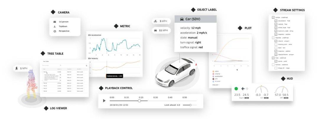 技术创业公司 Drive.ai 也曾在 2018 年介绍过 4 款可视化工具(仪表板显示器、3D 数据可视化、注释数据集以及交互式模拟),但也只供内部工程师使用。