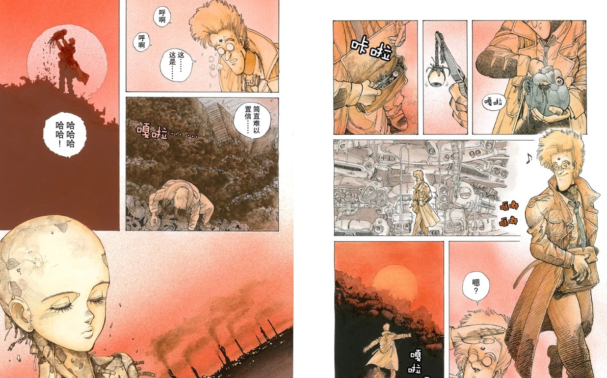《铳梦》的故事其实一开始是给人一种强烈的陌生感的,木城雪户从小学就开始画怪兽画机器人,到他画《铳梦》已经浸淫了将近二十年,在他的脑海里已经存在了一个自洽运转的机器世界,所以除了那些对赛博朋克有基础的读者,很多读者其实对这样的世界观是很陌生的。