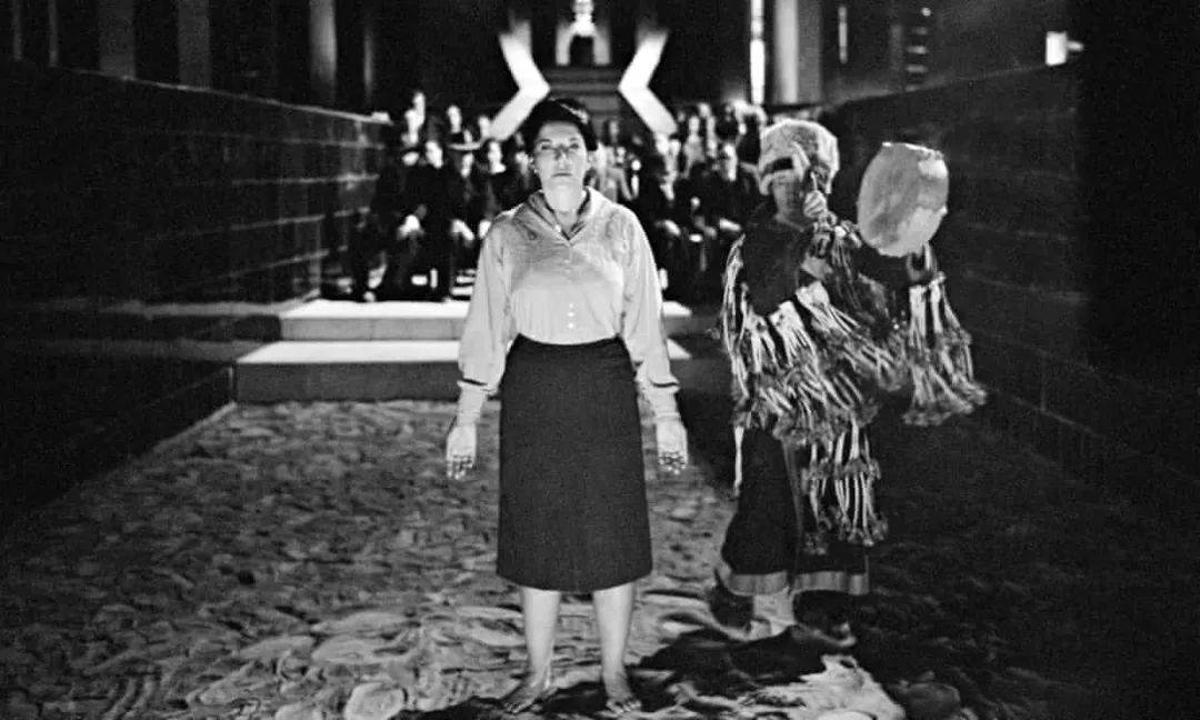 以访问学者角色进入DAU、穿着50年代服装的知名行为艺术家阿布拉莫维奇,正在进行一场萨满巫师主持的洁净仪式;