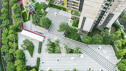 于是,他们决定做让景观融入建筑、融入自然。在BAM的这次设计里,许多管道、风扇、逃生设施,都被隐藏在景观之中,让人意识不到“设计”的存在。而与建筑紧密相连的景观,如“B14平台”的泳池房、阶梯式露台、花园露台等,也都通过“几何化”的设计与建筑紧密结合。