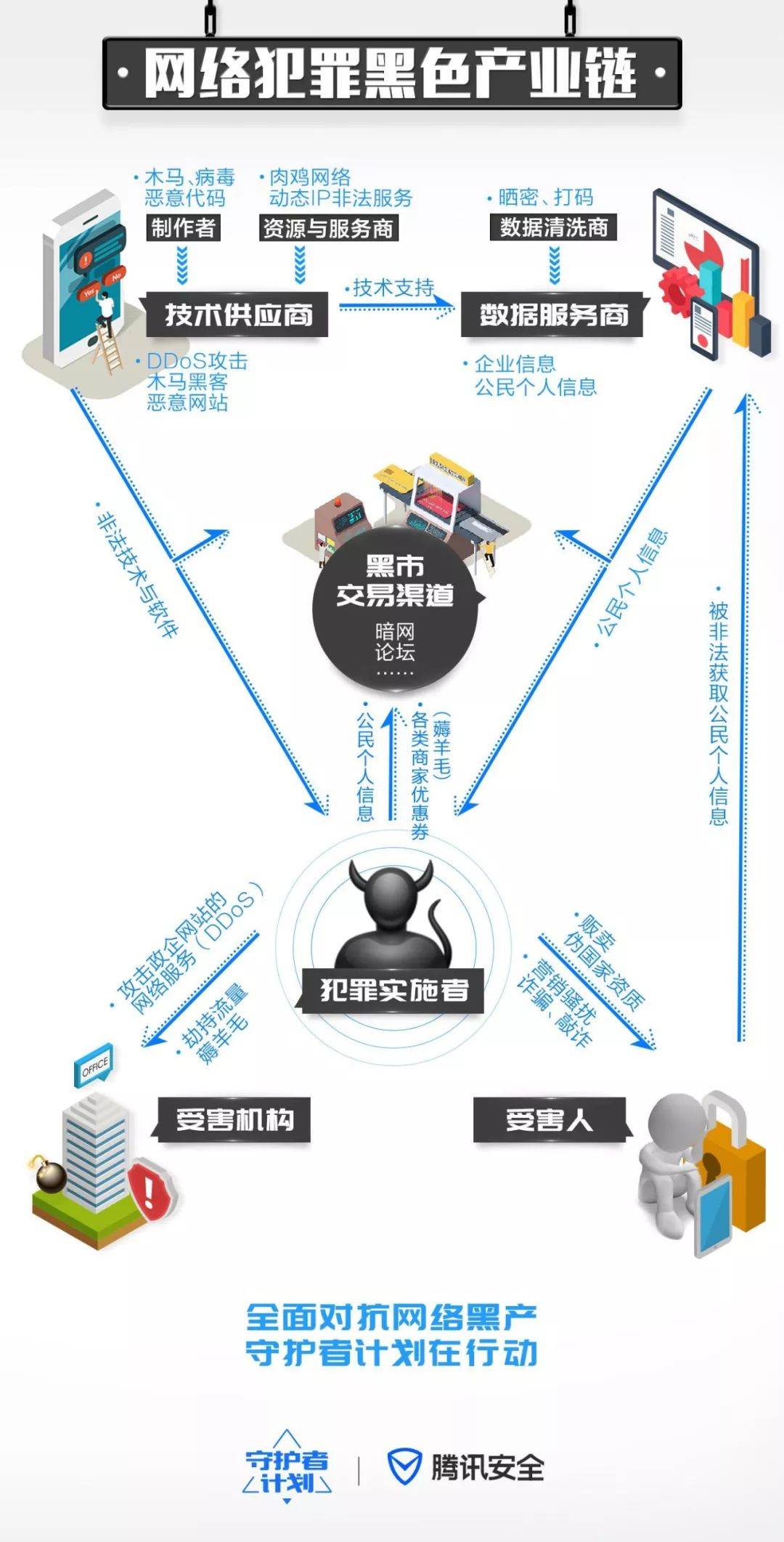 互联网黑产产业链分为上下游,各有分工,环环相扣。