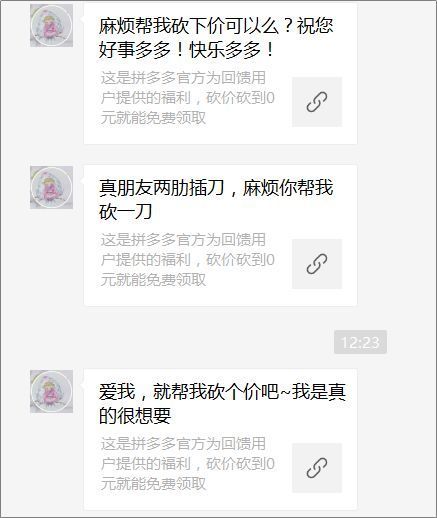 这里,我们举一个社交裂变做得非常厉害的案例——拼多多,大家一定对拼多多那些轰炸朋友圈和微信群的文案有印象,它的社交裂变堪称行业“典范”。