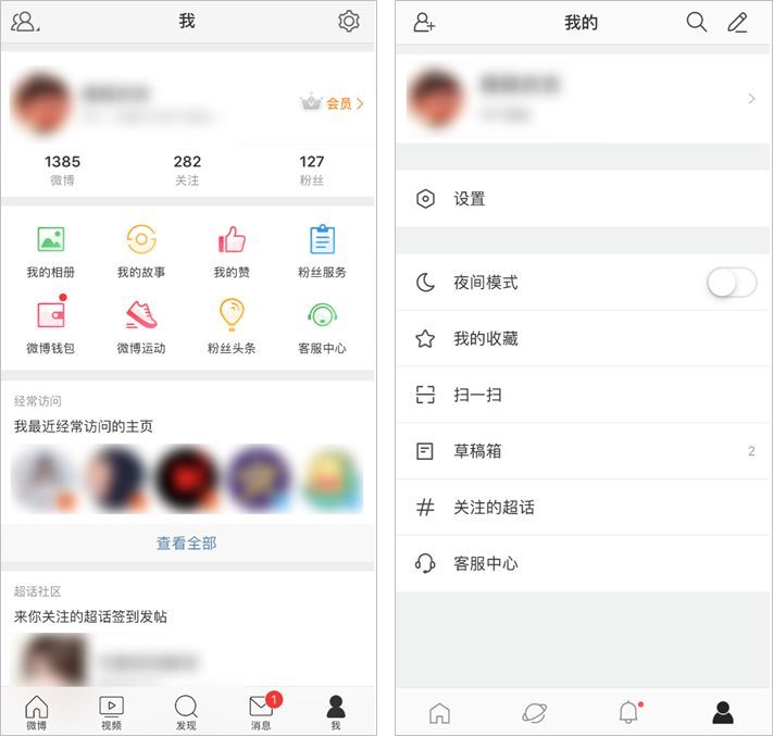 下图左边是国内版右边是国际版,仅仅通过“我”标签下的内容对比来看,国内版的功能是不是非常繁多?而这其中,绝大部分笔者压根用不着。