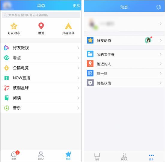 类似的还有 QQ,这个 App 的功能之繁多相信已经不需要多说了,动态栏一堆不用的功能(可以关闭),消息中总是会突然冒出来公众号的内容(从来没有关注过),联系人界面还有什么“坦白说”。
