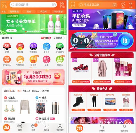 我们再来看看国际版,淘宝去掉了“微淘”模块,微博虽然把视频移到了搜索页,但是只有“热门视频”一栏,不再有更细分的分发。