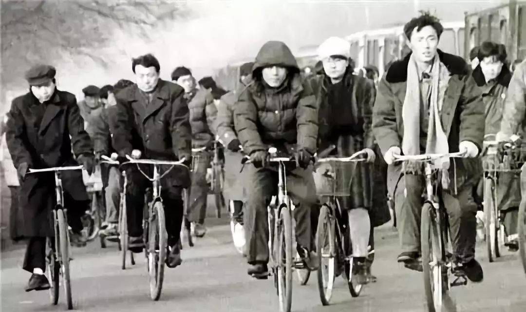 那个时代,最典型的城市画面,就是上下班时,一辆接一辆,横向能排到街中心的自行车群。