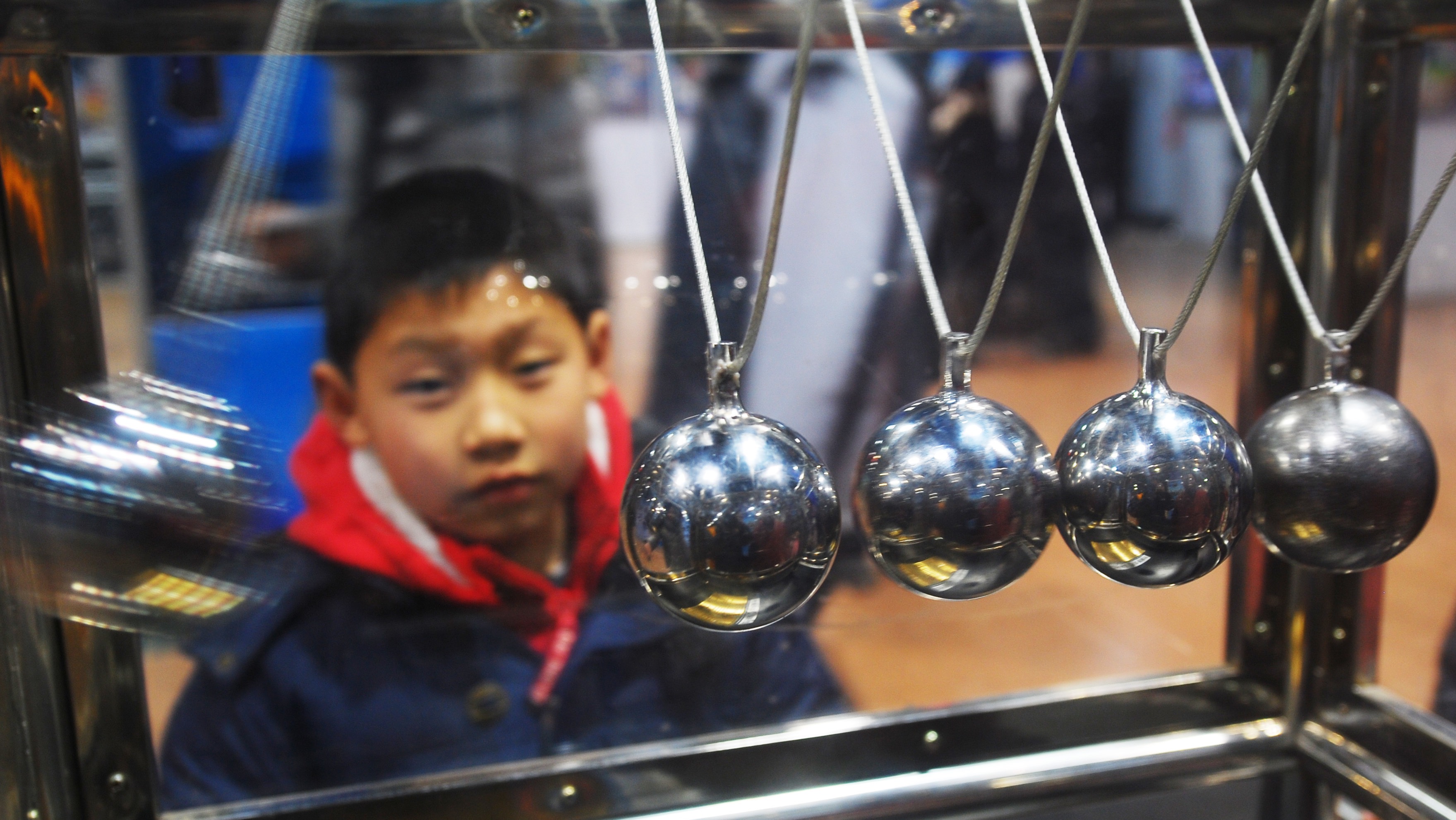 在牛顿摆中,当一个球击中另一个时,另一端的球会向外飞,以保持动量的守恒。为什么?这是因为空间的对称性。