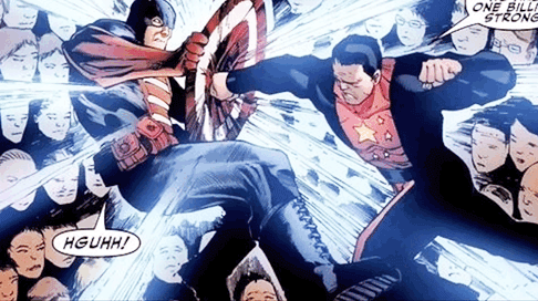此外,漫威还脑洞大开地创造过可以汇集十几亿人力量的“万众侠”,一拳就能把坚不可摧的“美队”盾牌打瘪。