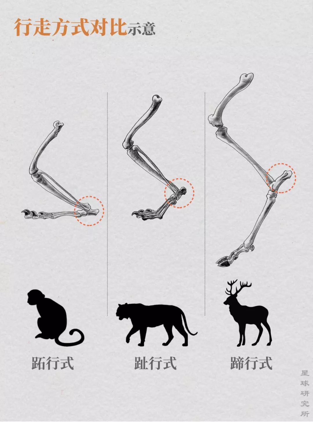它们四肢骨骼延长,并“踮起脚尖”,从全部脚掌落地的跖(zhí)行式行走改为脚尖点地的趾行式行走。