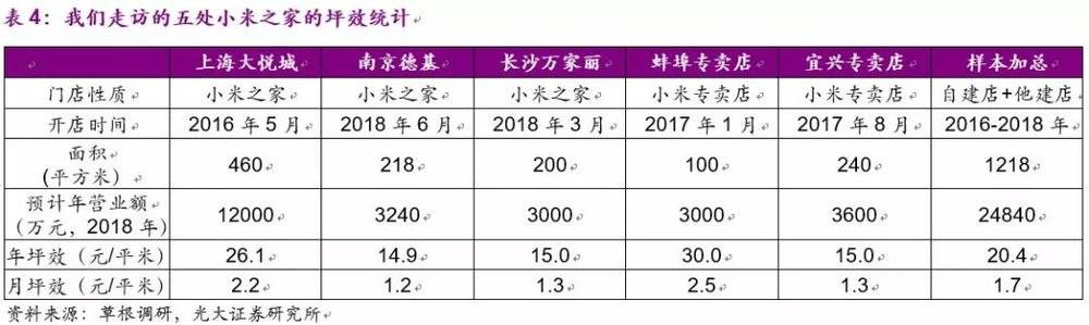 出于展示和体验需要,小米之家门店面积平均在200平米左右,要取得高坪效只有做高零售额一条路。