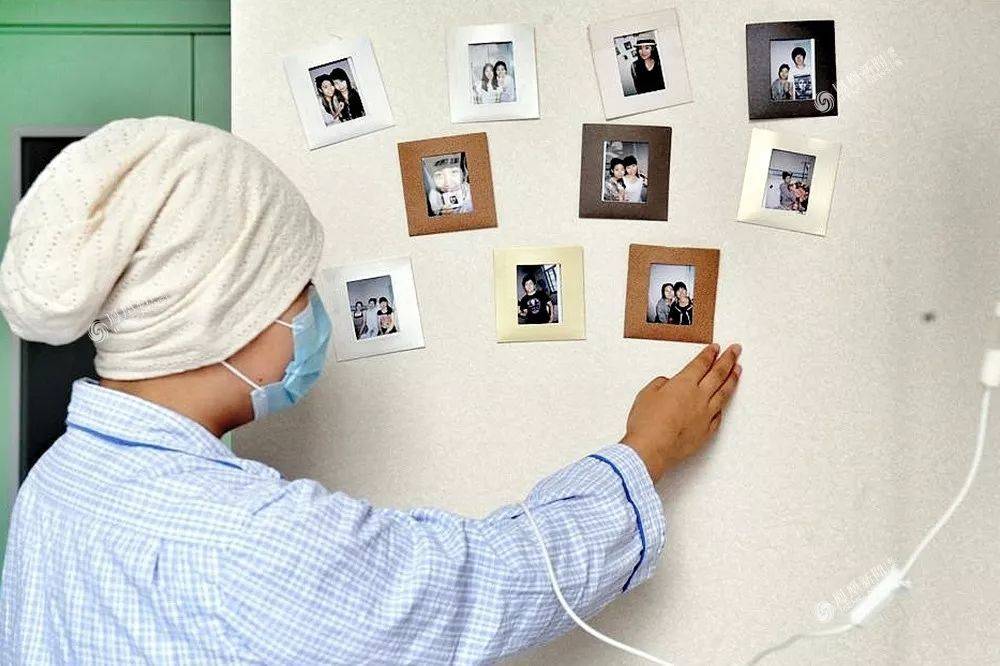 婷婷指着病房墙上贴着的照片告诉记者,现在因为化疗头发都没了,全身也因为药物虚胖了不少。