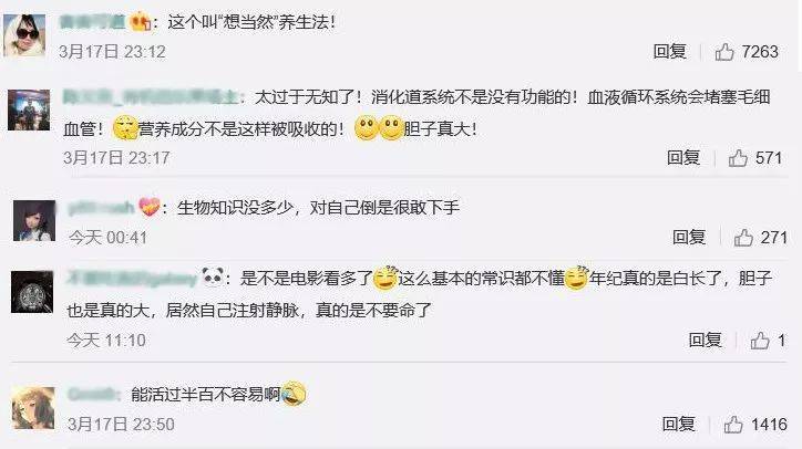 3月18日,一条新闻引起了热议:一位热爱养生的阿姨突发奇想,觉得新鲜水果营养丰富,于是将20多种水果混合榨汁之后,经过简单过滤,自己进行了静脉注射。不料注射后立即感到皮肤瘙痒,体温上升,就医后发现全身严重感染,多脏器损伤,险些命丧黄泉。