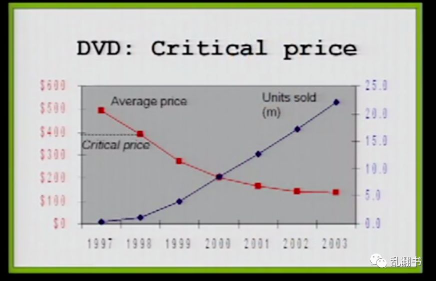 1997年3月DVD播放机在美国上市,在半年内售出40万台。1998年,播放机的价格迅速下跌,到Netflix上线时,平均价格几乎下降了一半,到了580美元。