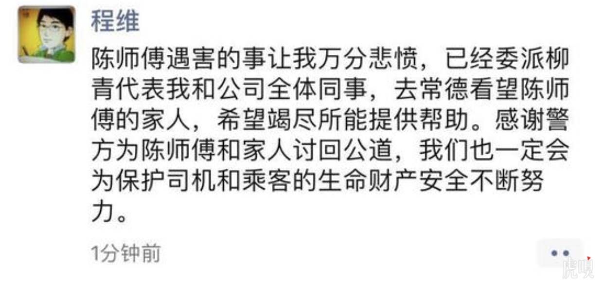 柳青说,“陈师傅非常受人尊重,平台上我们非常珍惜这样的师傅,知道这个事后,心情非常复杂难以表达。两个孩子,爸爸不在身边,以后会有很多困难,我们将尽最大力量帮助到这个家庭。”“这次来,是受程维和全体同事的托付,我们这个团队是一个想做事情的团队,也想照顾平台上的司机,希望将来能做的更好,”柳青表示。