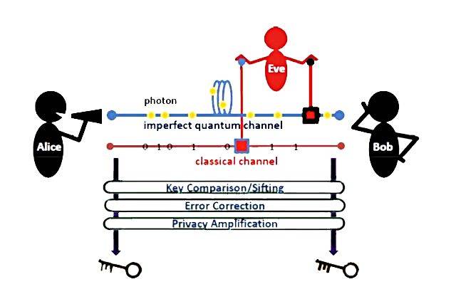 量子通讯的理论基石是“量子退相干”理论,具体可以解释为:窃听量子密钥会造成量子态溃缩,从而使加密密钥无法传输,那么加密方就能发现有第三者窥探,可立即终止信号传输。量子通讯有点像“终极之盾”,这是由理论本身决定的,所有的破绽在于工程技术。