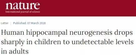 2018年3月,《Nature》上一篇题为“Human hippocampal neurogenesis drops sharply in children to undetectable levels in adults”的文章颠覆了过去的理论,来自加州大学旧金山分校的神经学家发现:一旦成年,大脑海马体区域的神经元似乎就停止再生了。